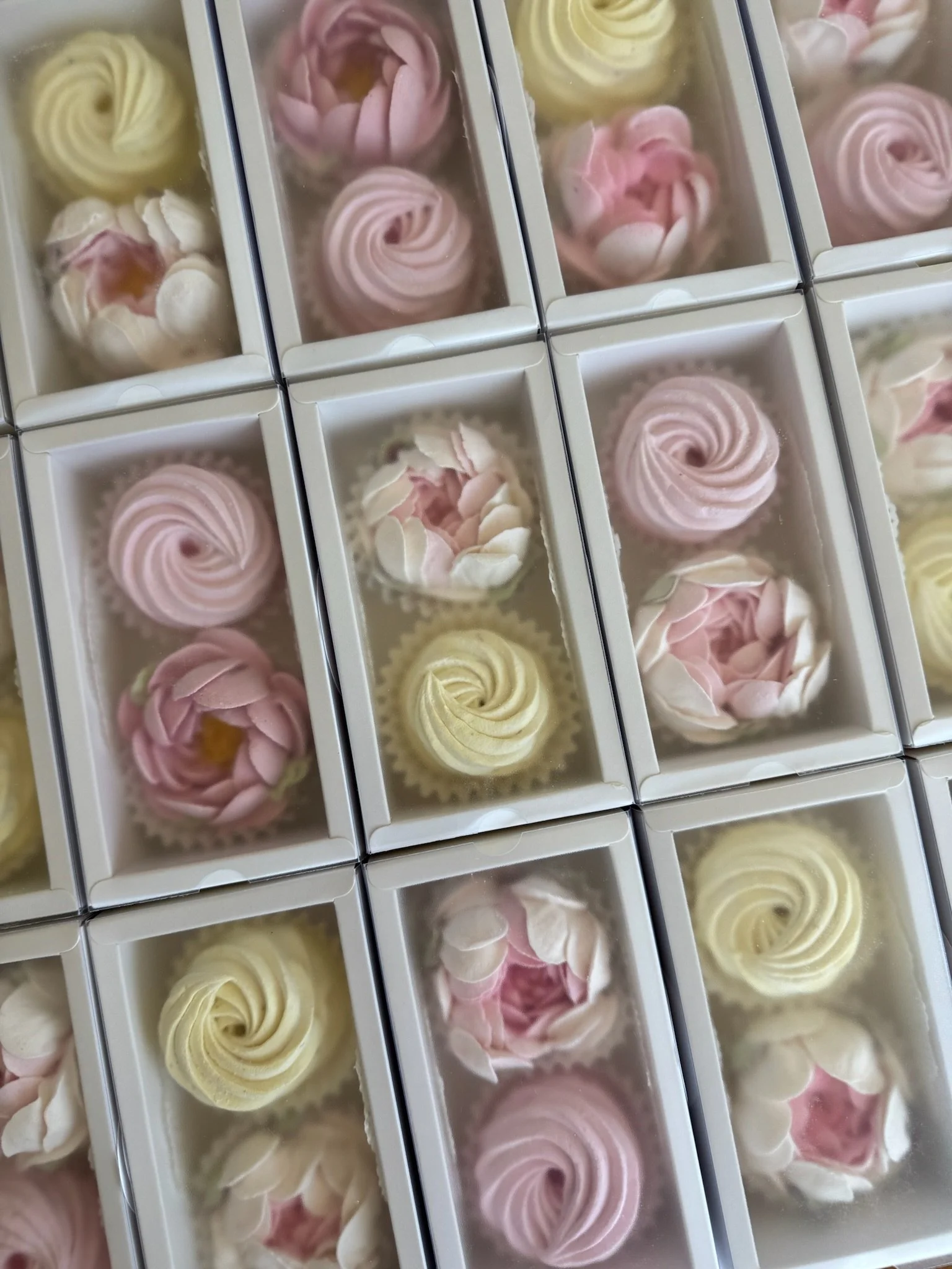 It’s topped with dark chocolate ganache and decorated with Soft Meringue Cream flowers, that are so light and complementary to the cake’s texture and flavors - you won’t stop eating them.